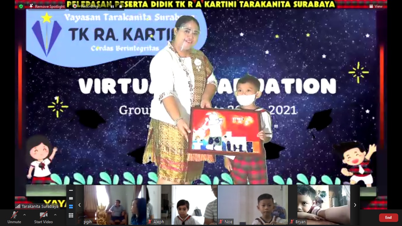 Sabtu, 12 Juni 2021 menjadi momen terakhir bagi peserta didik TK B TK RA Kartini sebagai hal yang dinanti-nantikan. Pelepasan diadakan dengan kemeriahan dan kegembiraan yang luar biasa. Seluruh peserta didik beserta orang tua mengikuti kegiatan pelepasan dengan khusuk dan khidmat seperti penyerahan anak kepada orang tua disimboliskan dengan pelepasan atribut yang dihadiri oleh ananda Kinanti dan Verrell yang dilanjutkan dengan berbagai pentas seni dan unjuk gigi dari seluruh siswa. Ada menari, menyanyi, berpuisi, modern dance, dan balet. Tidak hanya siswa, para guru juga memberikan persembahannya untuk memeriahkan hari yang dinanti ini.