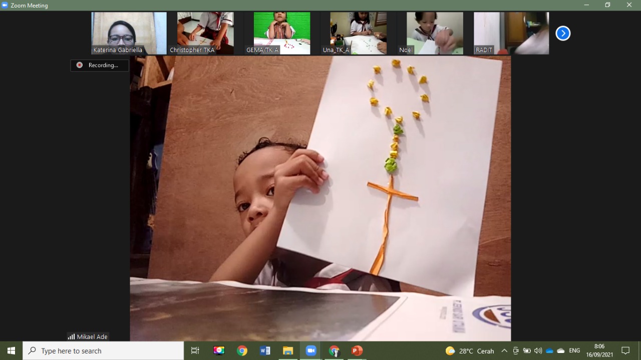Kemarin, 16 September 2021 peserta didik di kelas TK A belajar mengenai Kehidupan Menggereja dalam keluarga. Banyak kegiatan dan peralatan doa yang dikenalkan. Ditambah lagi dengan bermain meremas dan melipat kertas lalu disusun menjadi bentuk gelang rosario. Cantik dan warna/i lho hasilnya.
